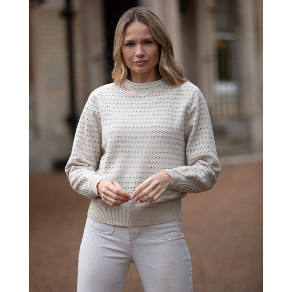 New this lovely Lightweight Scandi-inspired Fairisle jumper. Styled with a flattering funnel neckline and with a deep welt rib this shorter style looks great worn with jeans or slim skirts. Available in two colour ways warm cream and deep forest green, its made in our 30% Cashmere 70% Merino wool blend Italian yarn which is really soft and comfortable to wear. Two sizes